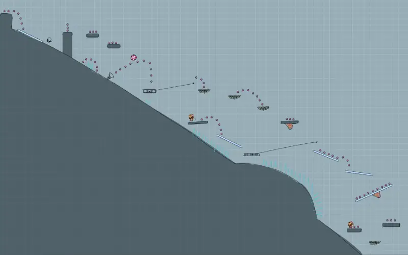Considering the young target audience (3+), I designed a simple main path. For experienced players I created more challenging alternative routes, rewarding them with faster completion times.
